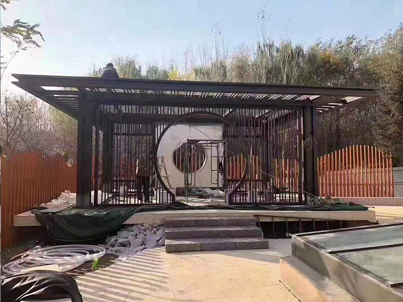 鋁藝涼亭,鋁藝廊架,花架,護欄,不銹鋼護欄、扶手,百葉窗系列,卷簾門,肯德基門,入庫銅門,膜結構工程。